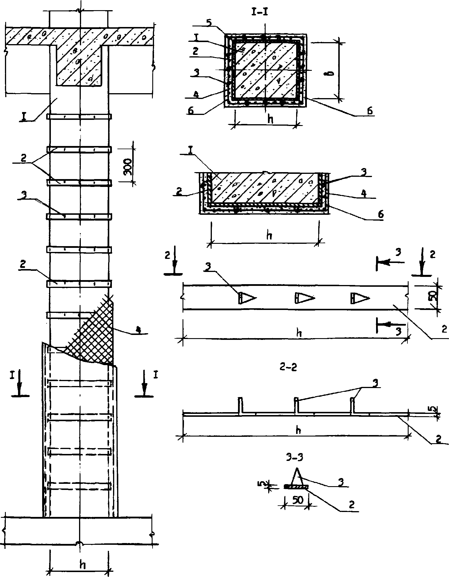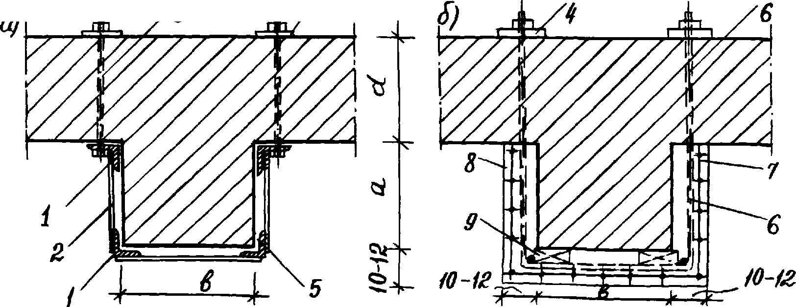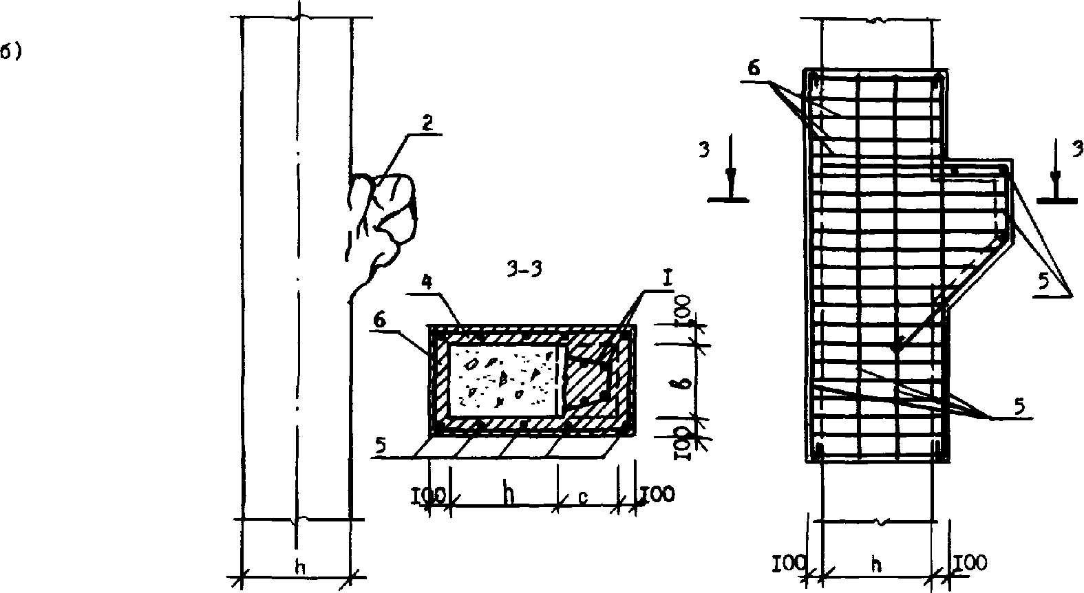 При усилении элементов железобетонных конструкций обоймами следует поперечное армирование конструировать замкнутым, а при усилении трехсторонними рубашками хомуты следует замыкать или соединять на сварке со специальными анкерами (уголки, полосовая сталь), располагаемыми на четвертой необетонируемой стороне элемента, принимая защитные мероприятия против их коррозии.
