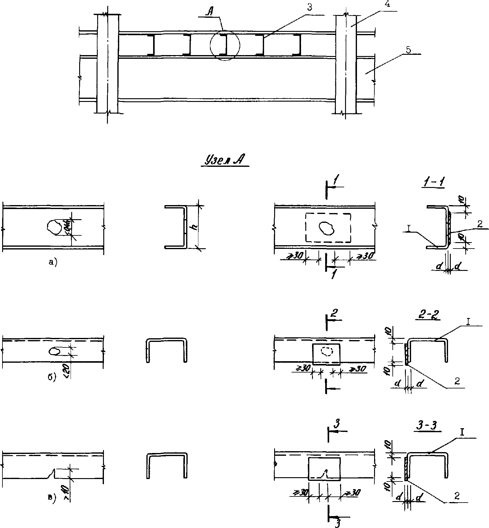 - установления степени аварийности существующей конструкции и возможности дальнейшего использования ее при усилении или необходимости замены;