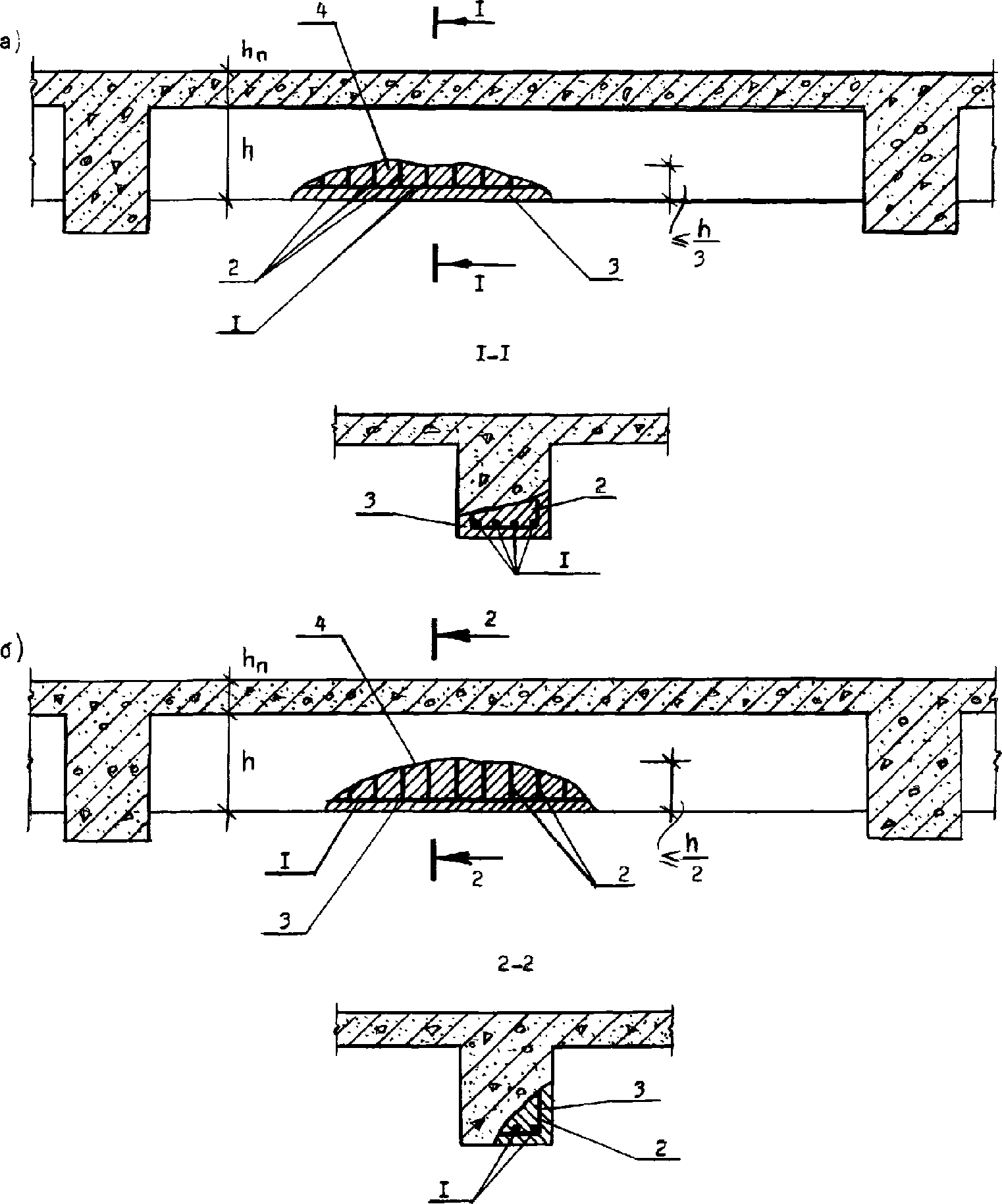 ) и от наличия дефектов бетона в сжатой или количества и состояния арматуры в растянутой зоне балки. Поэтому при проектировании усиления необходимо, чтобы после усиления балки соблюдались условия, зависящие от высоты сжатой зоны