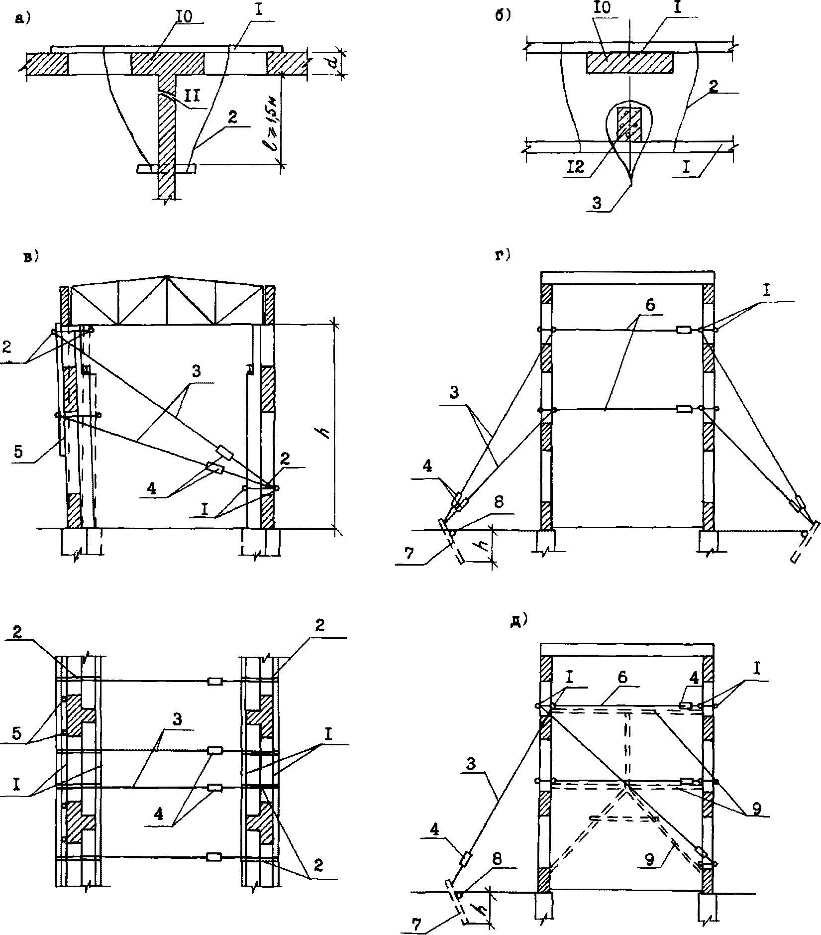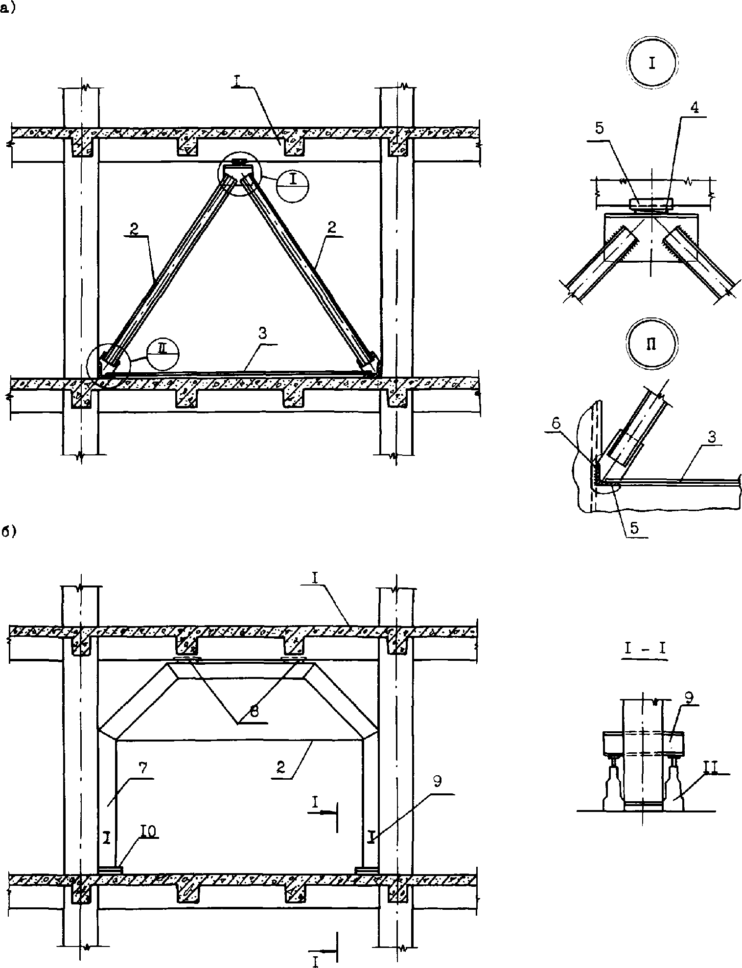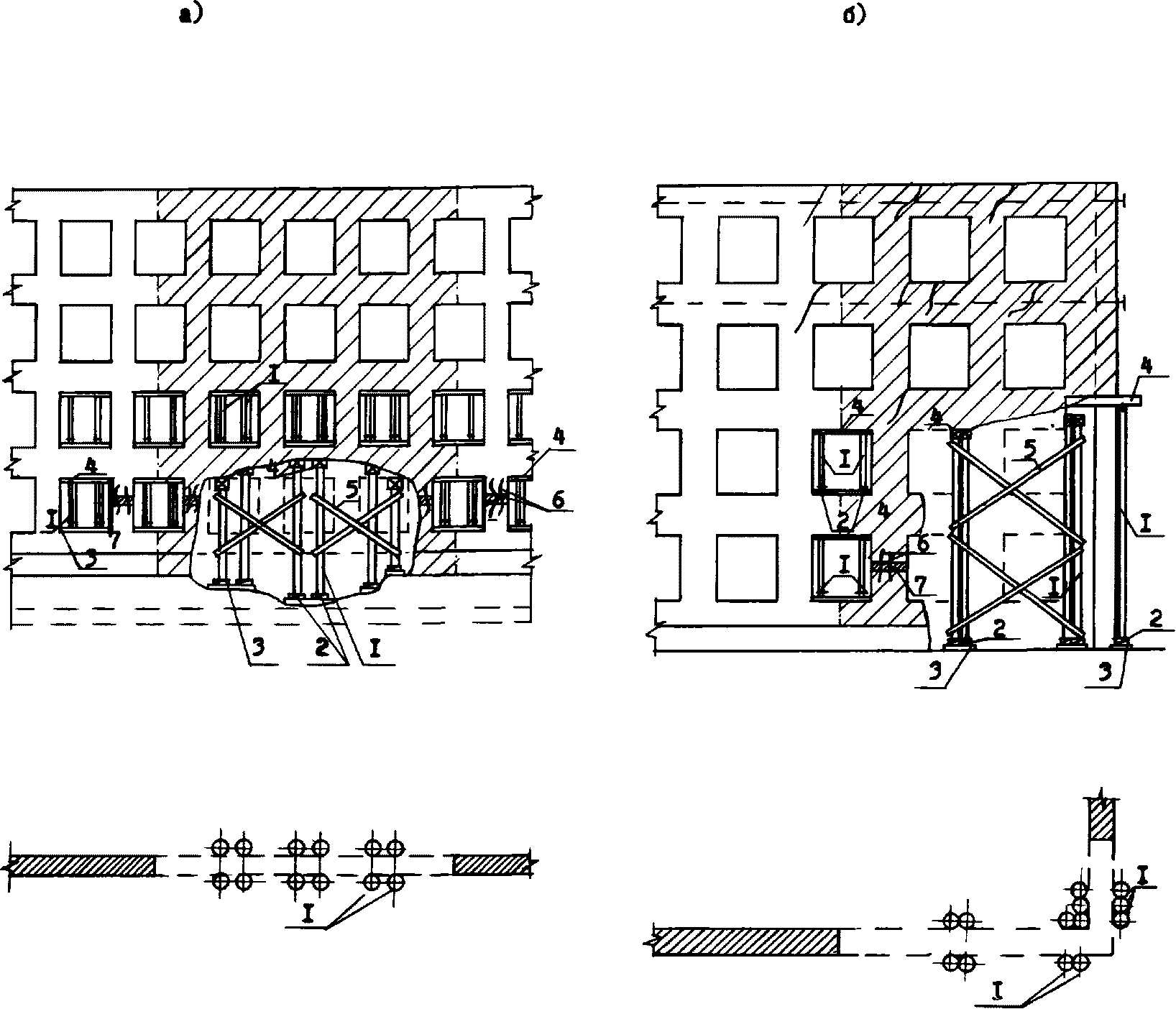 - подкосными системами (порталами) при одновременном разгружении подкосами колонн;