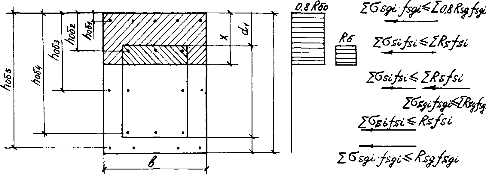 , определяемой из соответствующих условий равновесия, и в зависимости от граничного значения относительной высоты сжатой зоны бетона (при котором предельное состояние элемента наступает одновременно с достижением в растянутой арматуре напряжения, равного расчетному сопротивлению