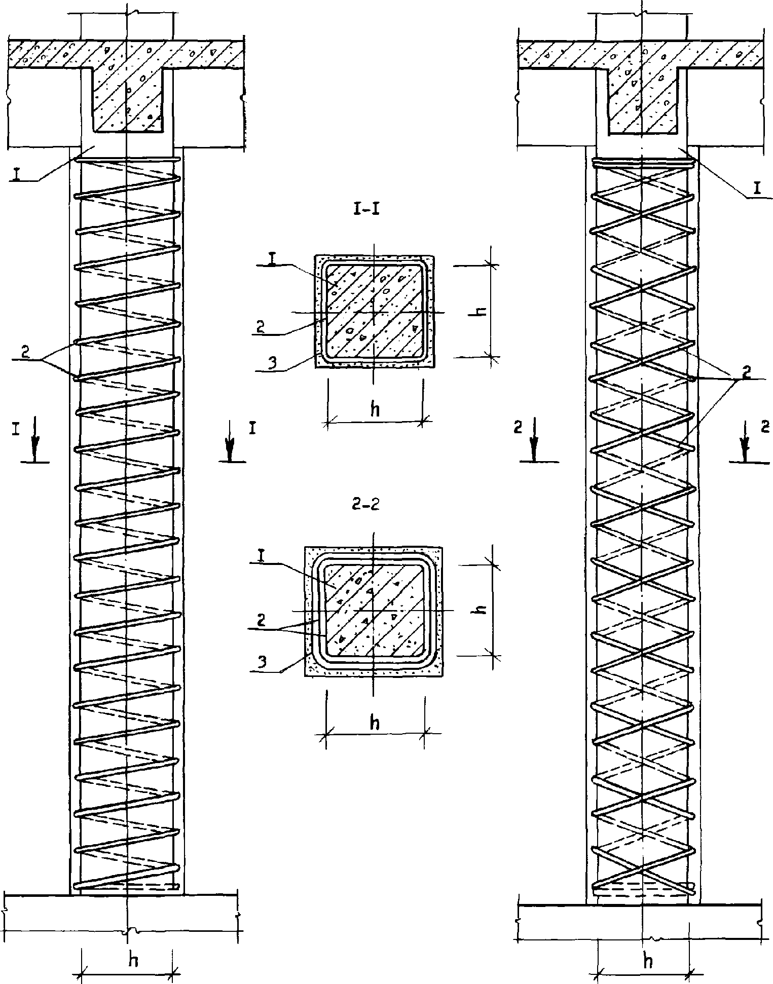 Железобетонные обоймы со спиральным армированием применяются в основном для усиления многогранных центрально-сжатых элементов (колонны, столбы). Расчет таких обойм производится по