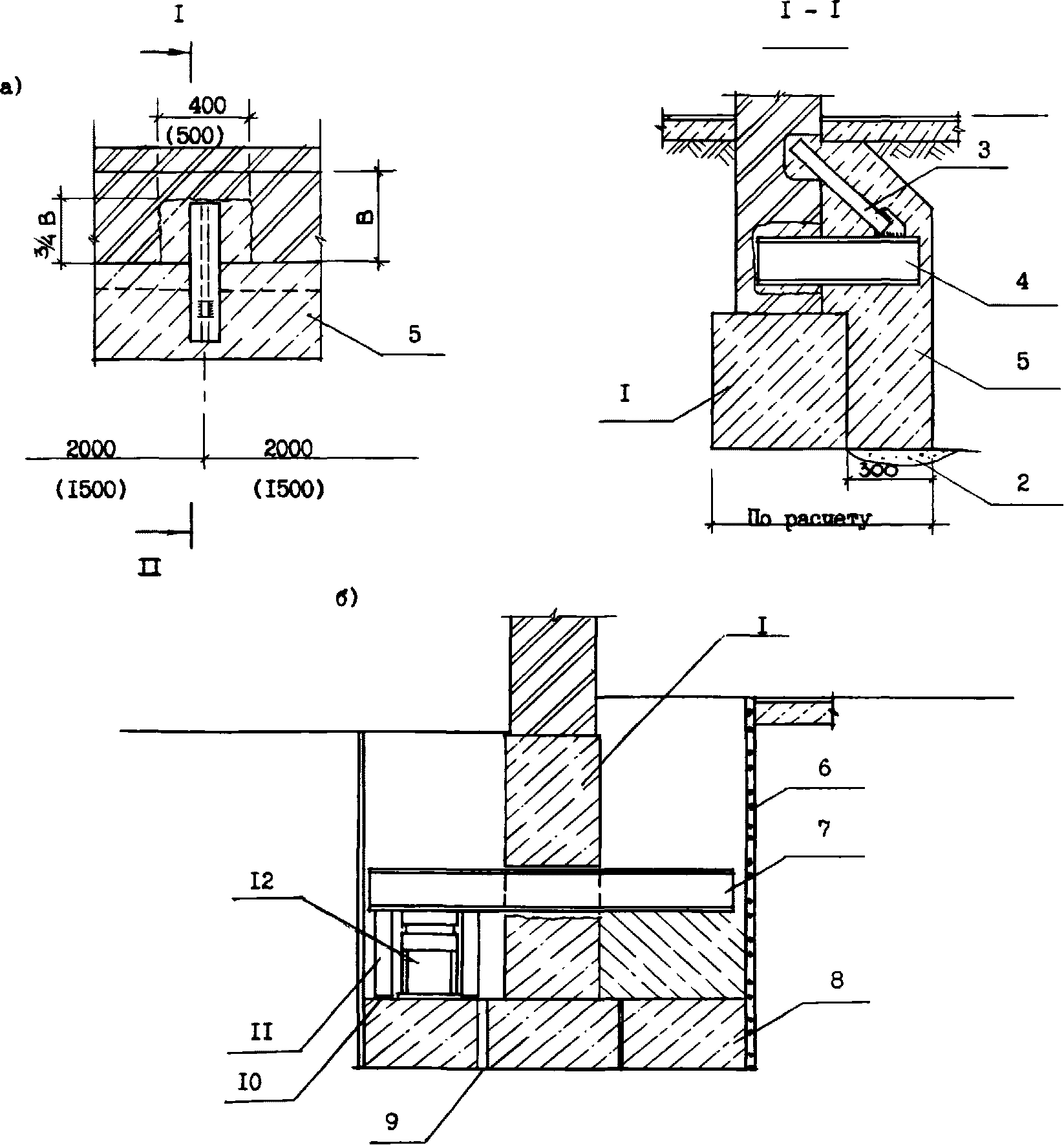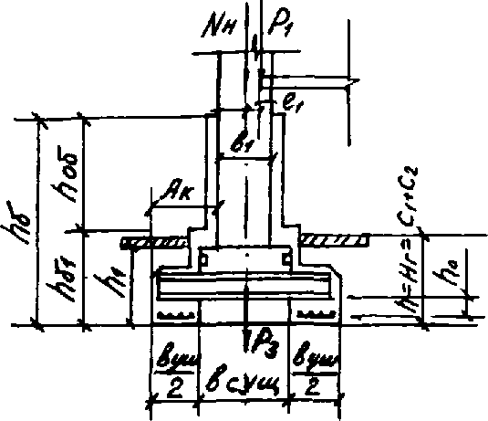 Смятие банкета и колонны у разгружающей консоли проверяют аналогично расчету ленточных фундаментов с учетом того, что усилия N и Mк распределяются обычно на две консоли.