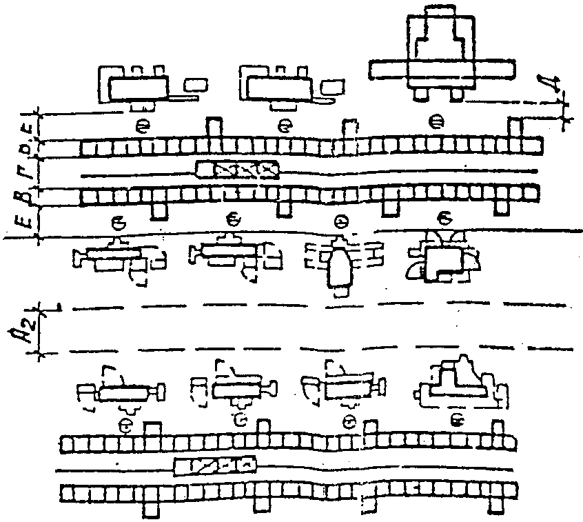 1.7. Условные обозначения, надписи, нанесение размеров и др., применяемые на планах расположения технологического оборудования и механообрабатывающих и сборочных цехов должны соответствовать: