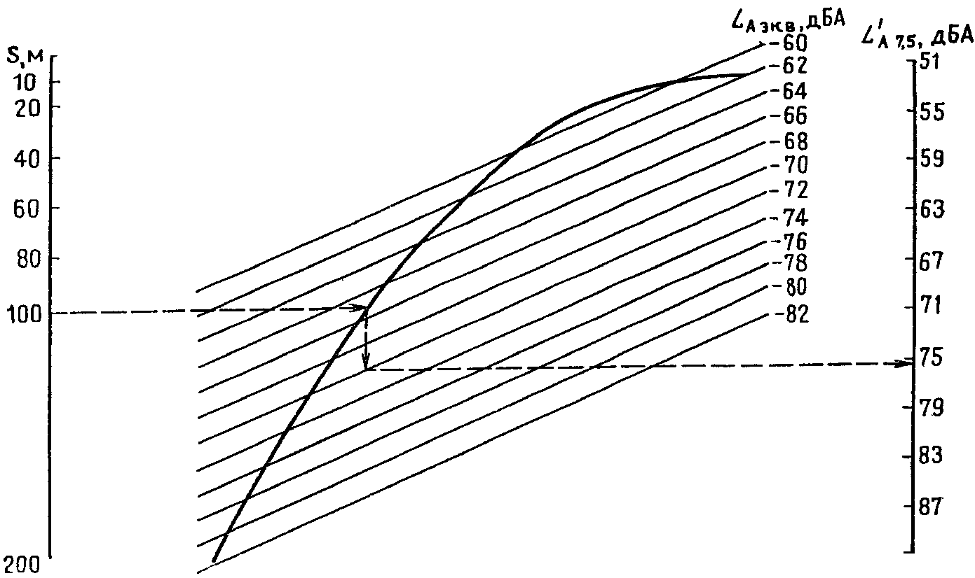 - расчетный уровень шума источника на стандартном расстоянии (обычно 7,5 м), дБА