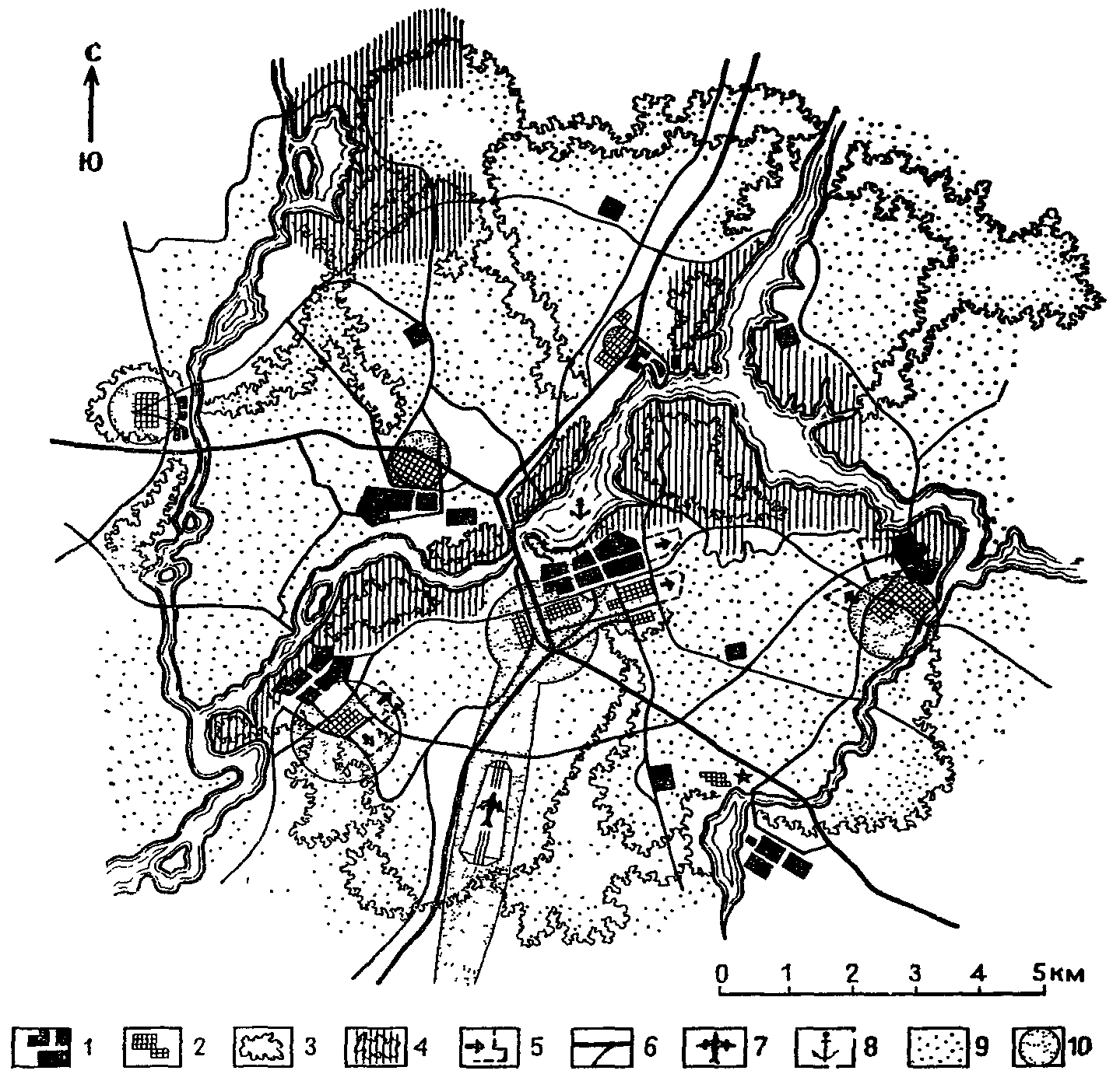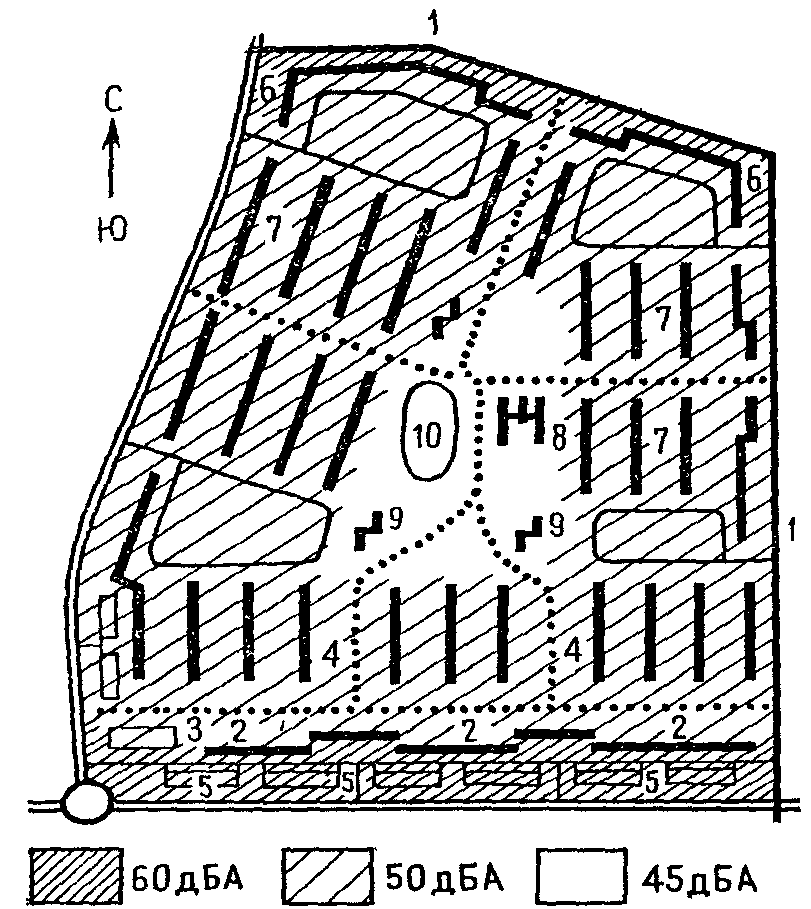 9 - сельскохозяйственные территории; 10 - зоны зашумленности