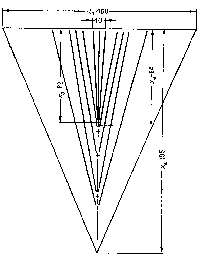 табл. 20 построить на прозрачной пленке или бумаге в рассматриваемом масштабе рабочую палетку (рис. 46). При необходимости на палетке можно интерполяцией установить промежуточные значения