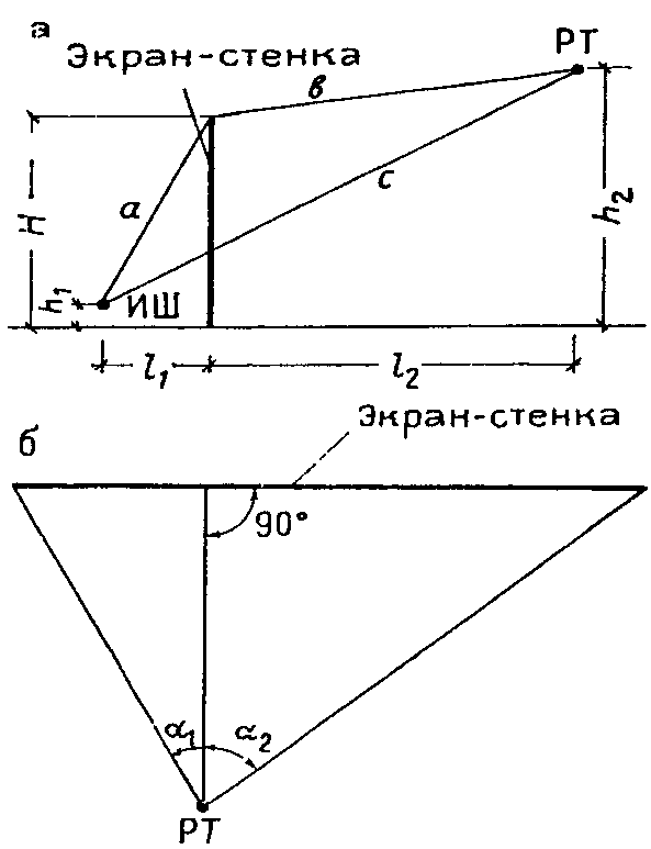 (рис. 41) уровень шума для точек, расположенных в зоне прямой видимости источника