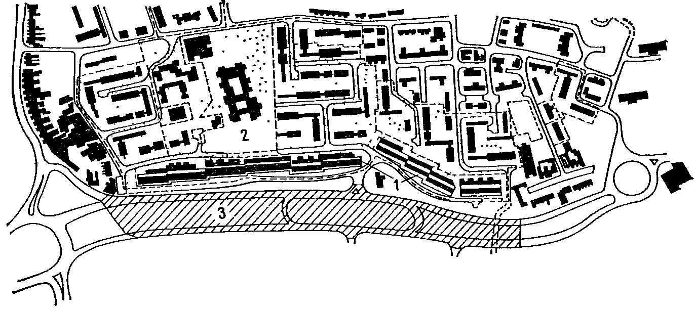 укрупнение межмагистральных территорий для отдаления основных массивов застройки от транспортных магистралей и выбор компактных геометрических форм межмагистральных территорий, дающих большую площадь акустического комфорта;
