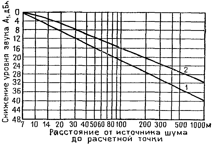 каждое удвоение расстояния от источника шума дает снижение уровня звука на 4 - 5 дБА;