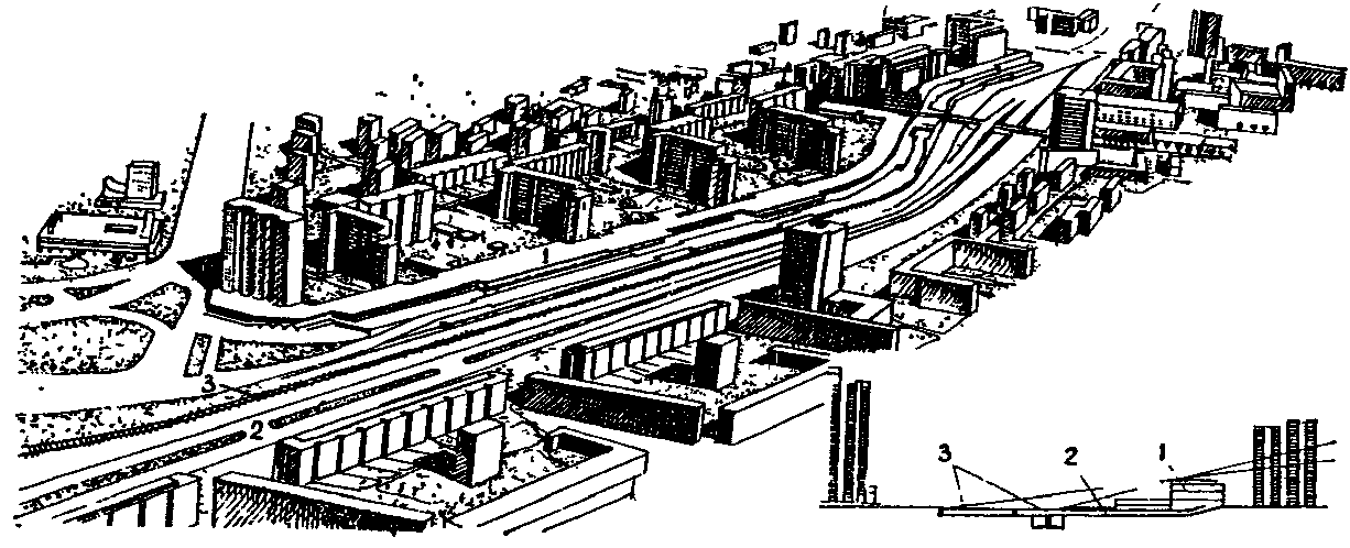 совмещение трасс железных дорог и автомобильных скоростных и грузовых дорог;