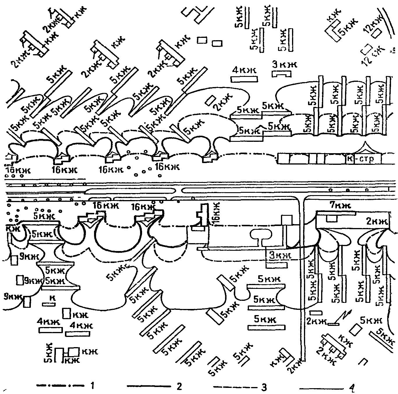 3 - лесопарковые зоны; 4 - зоны массового отдыха;