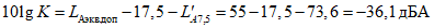 характеризует обеспеченность нормативного уровня звука в точке расчета, а отрицательное - необходимое снижение уровня звука, достигаемого снижением шума на источнике