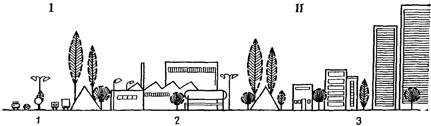 (разд. 3) между городами, населенными пунктами, рекреационными и лечебно-курортными зонами и аэродромами, промузлами, грузоемкими складскими зонами, трассами наземного, воздушного и водного транспорта;