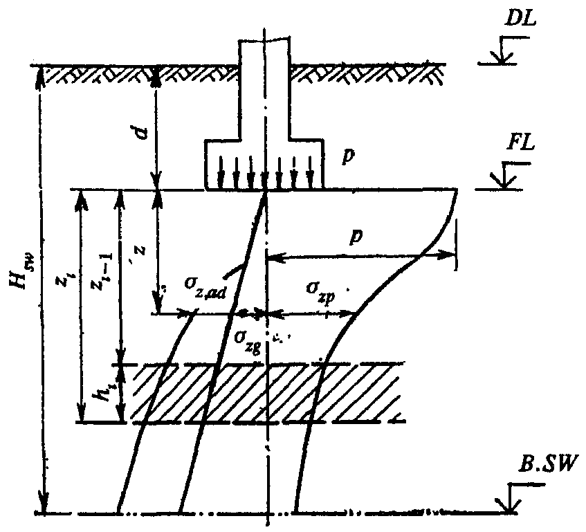 - то же, дополнительное от внешней нагрузки (давления фундамента);