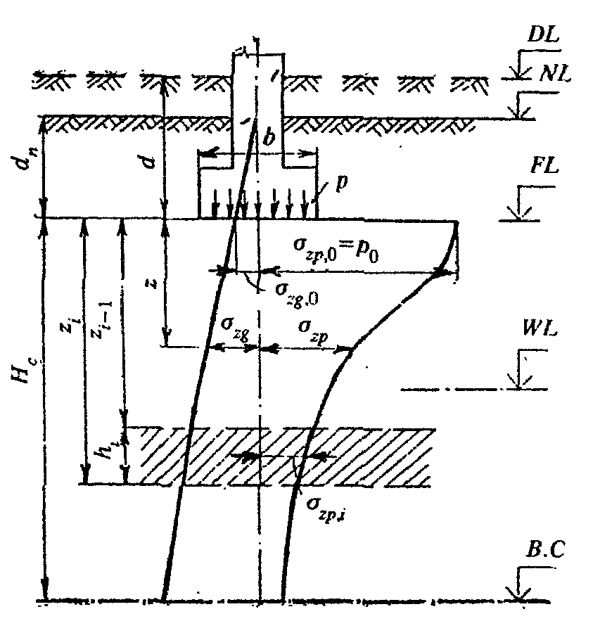 В.С - нижняя граница сжимаемой толщи;