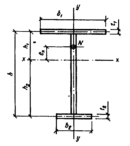 - моменты инерции сечения брутто относительно осей соответственно x-x и y-y;