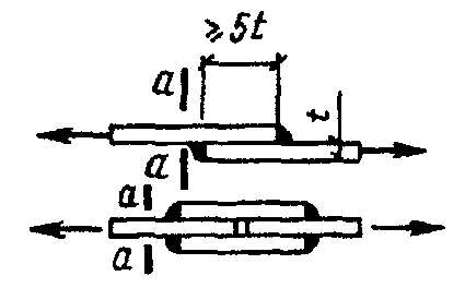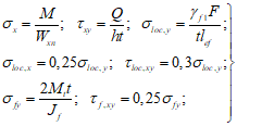 - коэффициенты для расчета углового шва соответственно по металлу шва и по металлу границы сплавления;