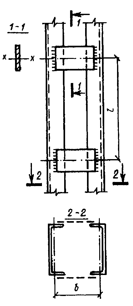 - расчетные длины элемента в плоскостях, перпендикулярных осям соответственно x-x и y-y;