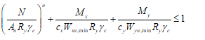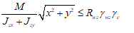 - моменты сопротивления сечения брутто относительно осей соответственно x-x и y-y;
