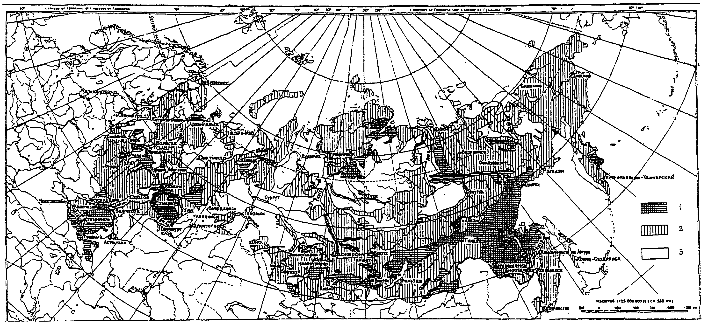 1.17. Зарегистрированные проявления наиболее вероятных опасных геологических процессов на территории СССР (в городах и поселках) приведены в справочном