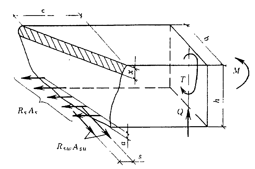 - площадь сечения отогнутых стержней, расположенных в одной наклонной к продольной оси элемента плоскости, пересекающей наклонное сечение;
