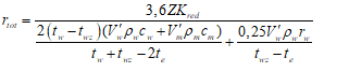 Примечания. 1. Для трубопроводов, прокладываемых в каналах, коэффициент теплоотдачи  . 2. К покровным слоям с малым коэффициентом излучения C относятся покрытия с C <= 2,33 Вт/(м2·К4) и менее, в том числе из тонколистовой оцинкованной стали, листов из алюминия и алюминиевых сплавов, а также других материалов, окрашенных алюминиевой краской. К покрытиям с высоким коэффициентом излучения относятся покрытия с C > 2,33 Вт/(м2·К4), в том числе стеклопластики и прочие материалы на основе синтетических и природных полимеров, асбестоцементные листы, штукатурки, покровные слои, окрашенные различными красками, кроме алюминиевой. 3. Коэффициент теплоотдачи от воздуха в канале к стенке канала допускается принимать равным 8 Вт/(м2·°C). |