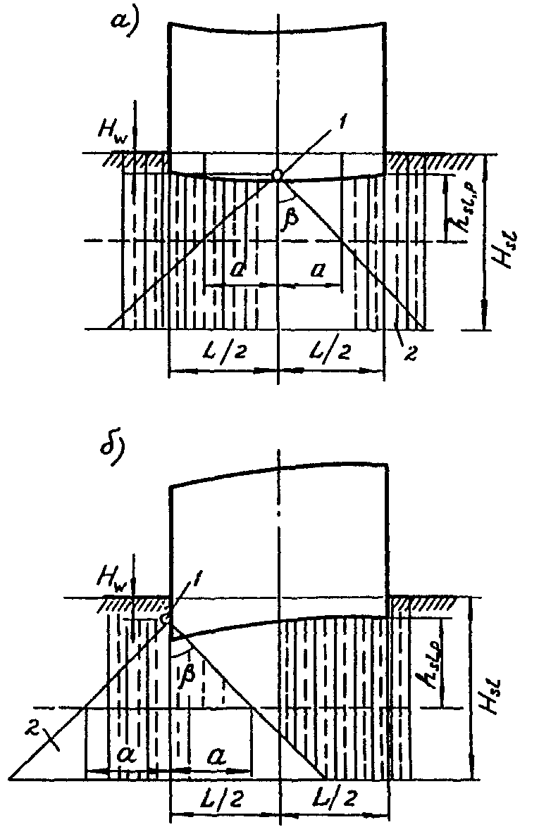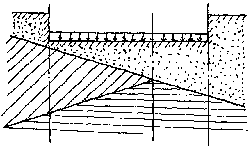 - в направлении вкрест простирания пластов. В этом случае распределительные свойства грунтов основания не следует учитывать.