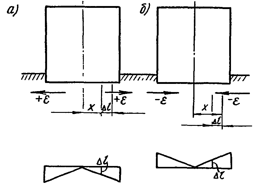 При диагональном расположении здания или сооружения относительно линии простирания пласта дополнительно следует учитывать воздействия от подработки в виде деформаций земной поверхности: