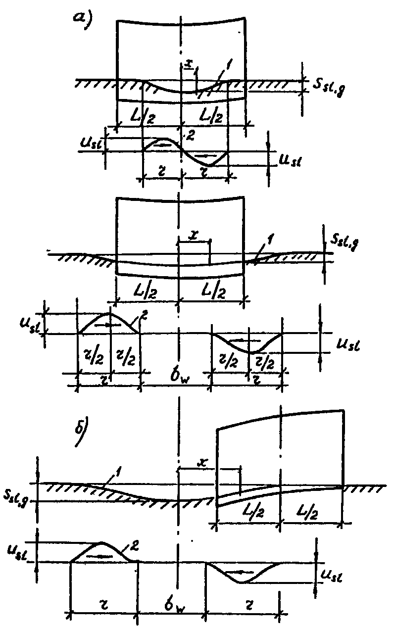 под подошвой фундамента. Горизонтальные перемещения поверхности основания следует, как правило, определять методами, учитывающими ограниченную глубину зоны горизонтальных перемещений грунта.