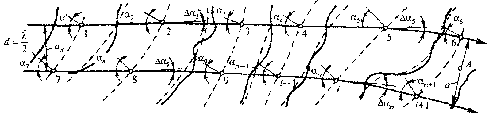 Длина волны - горизонтальное расстояние между вершинами двух смежных гребней на волновом профиле.