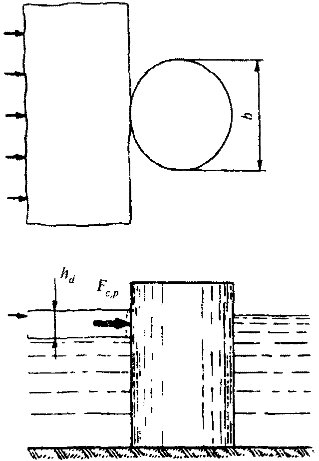 d - глубина воды при расчетном уровне;