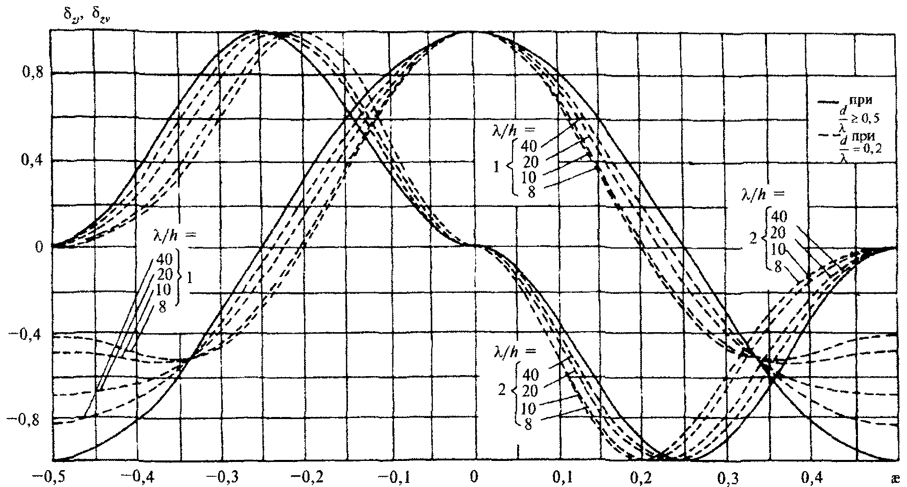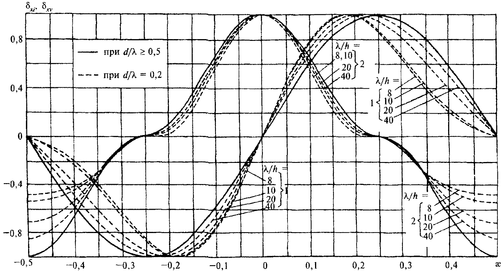 , кН/м, при гребне или ложбине стоячей волны (см.
