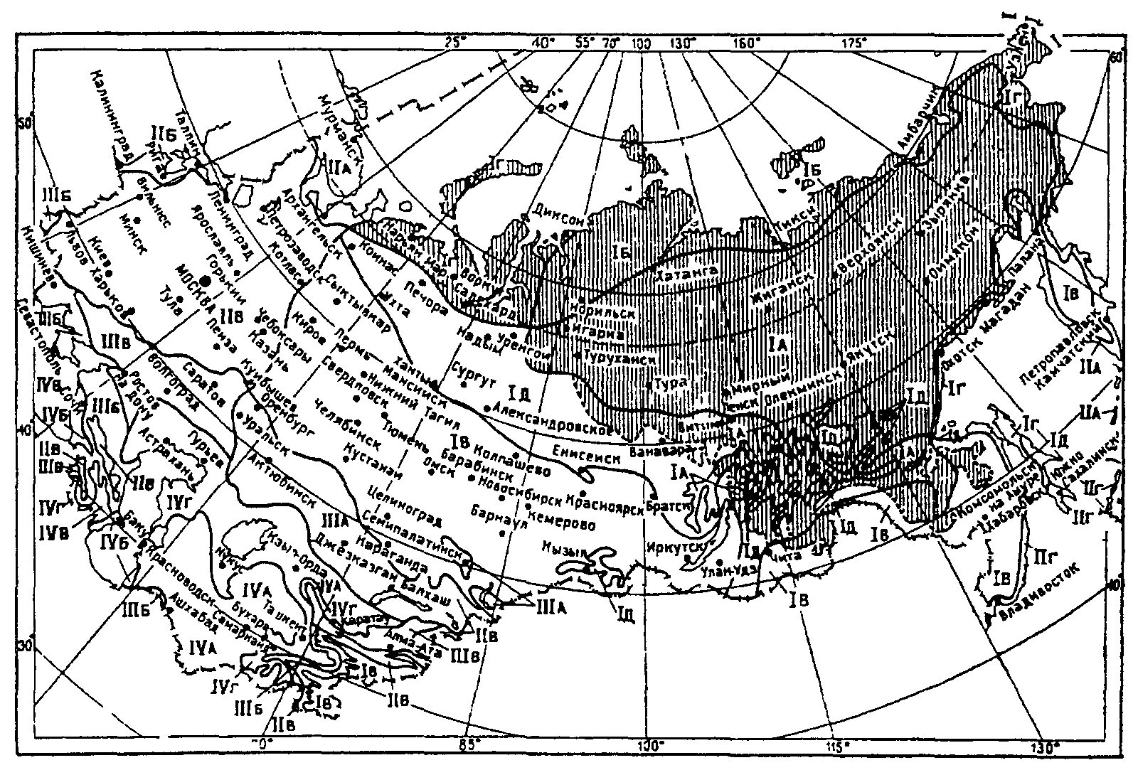 Примечание. Климатический подрайон IД характеризуется продолжительностью холодного периода года (со средней суточной температурой ниже 0 °С) 190 дней в году и более.