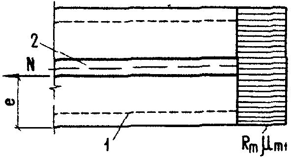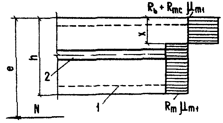 - эксцентриситет продольной силы N относительно центра тяжести приведенного сечения;