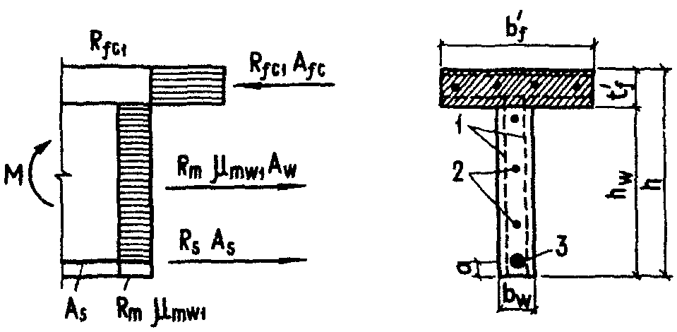 h - высота прямоугольного, таврового или двутаврового сечений;
