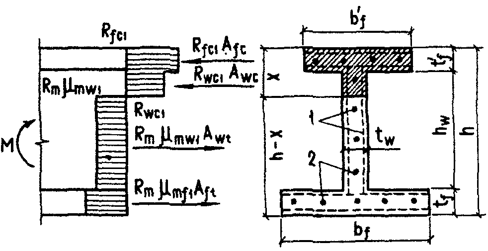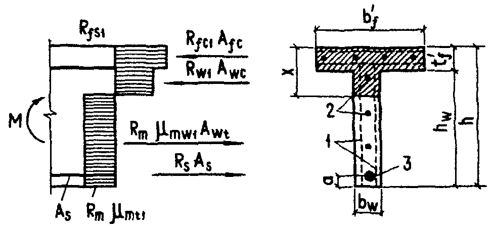 - расчетное приведенное сопротивление бетона сжатой зоны сечения;