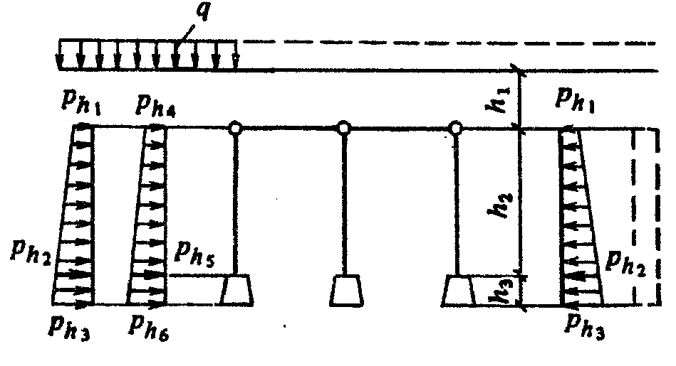 - интенсивность горизонтального давления от временной нагрузки на поверхности;