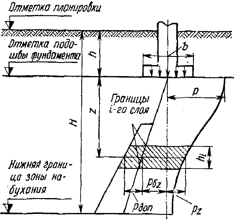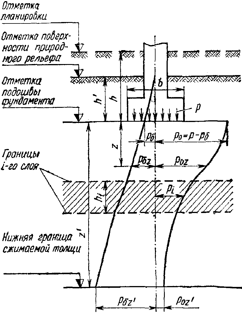 ; здесь l и b - длина и ширина подошвы фундамента, принимаемые в случае эксцентриситета приложения равнодействующей равными приведенным значениям