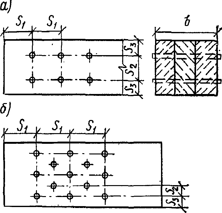 б) Растянутая зона составных балок на податливых │