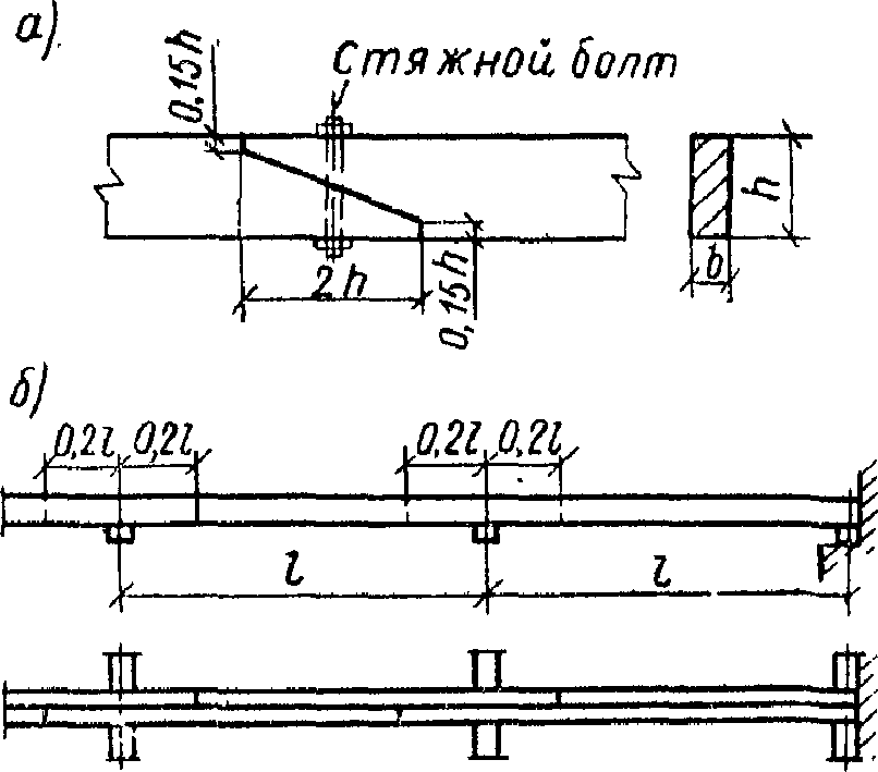 0,34 высоты поперечного сечения от кромки) клееных │