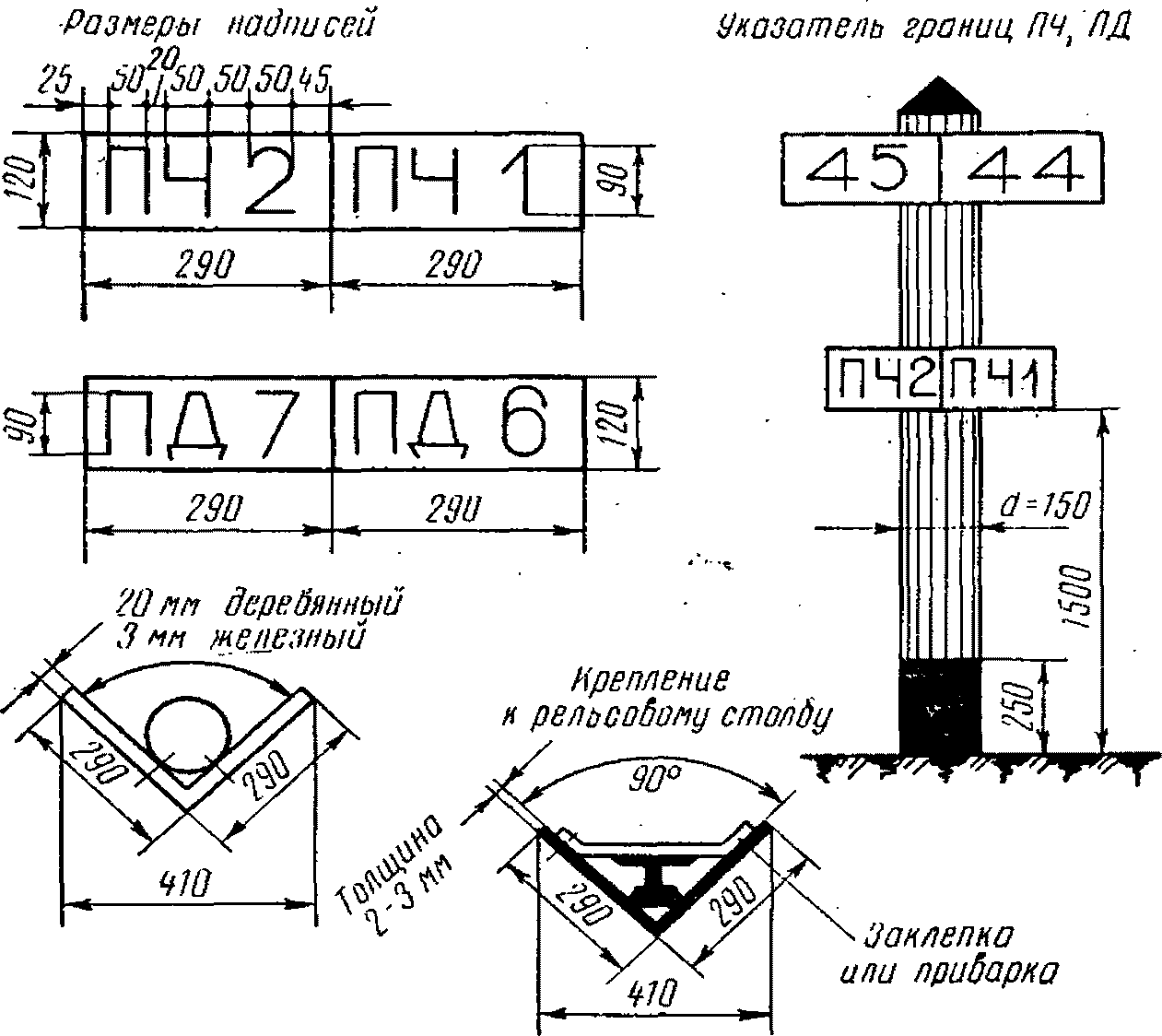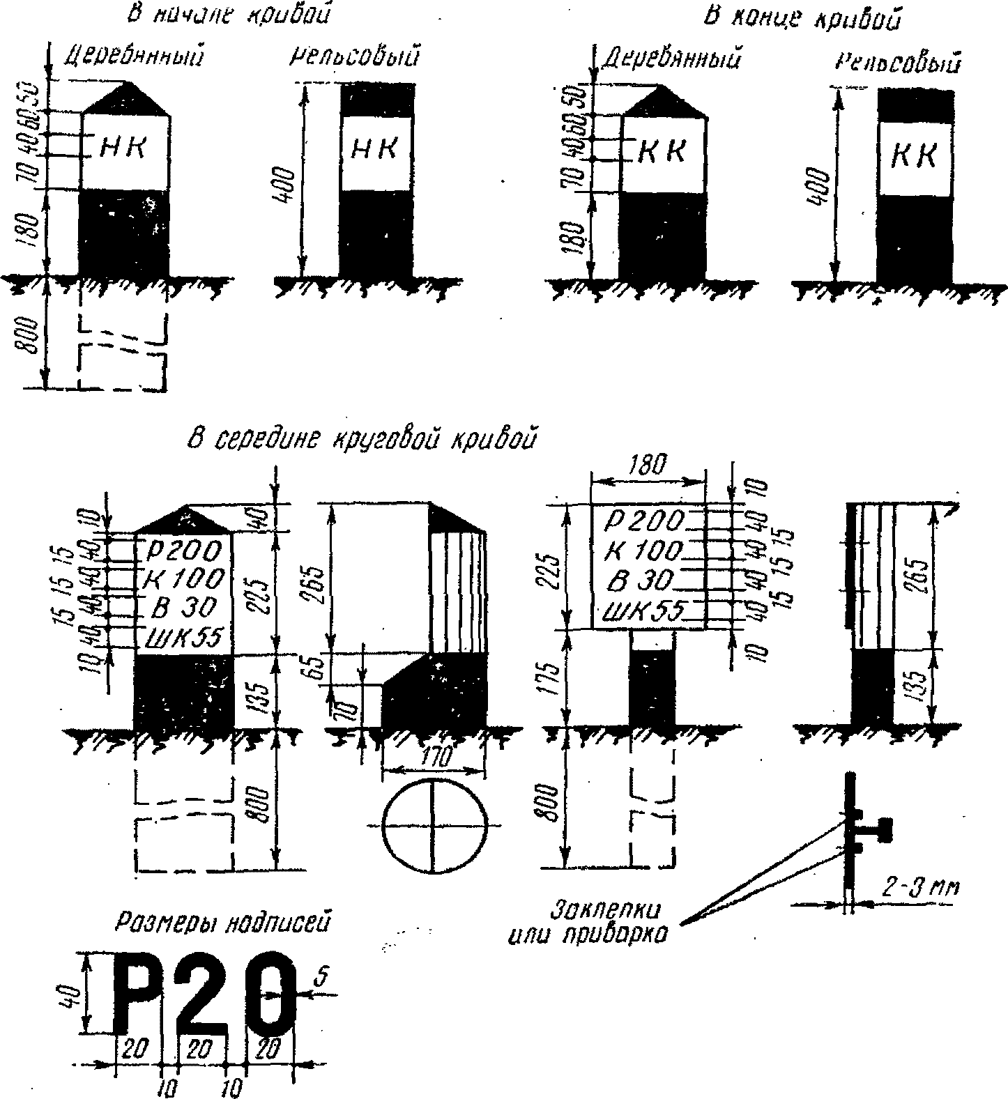 Могут применяться также пикетные знаки каменные и бетонные высотой, не превышающей уровня головки рельса, с цифрами тех же размеров, что и на деревянных знаках.