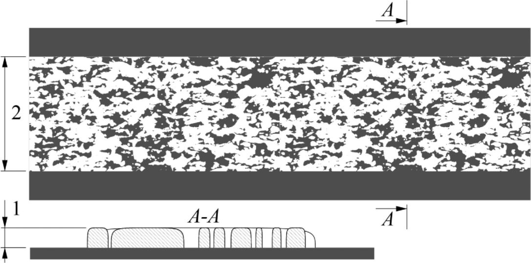 горизонтальная дорожная разметка со структурной поверхностью: Разметка, выполненная из отдельных фрагментов, степень заполнения линий которой при нанесении составляет от 25% до 75% и толщиной не менее 1,5 мм. Примечание - Степень заполнения линий - отношение площади покрытия разметочным материалом к площади поверхности разметки в ее внешних границах, выраженное в процентах. Допускается в случае применения соответствующих материалов и технологий нанесение разметки со структурной поверхностью на линии со сплошной поверхностью при соблюдении требований настоящего стандарта. |