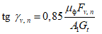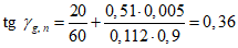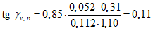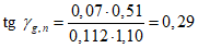 - тангенс угла сдвига от действия суммарных нормативных нагрузок;