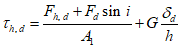 - касательные напряжения, возникающие в результате поворота верхней плоскости опорной части относительно нижней от расчетных нагрузок и воздействий;