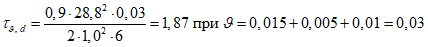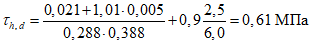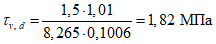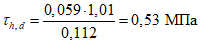 - касательные напряжения, возникающие в резине опорной части от расчетных нагрузок;
