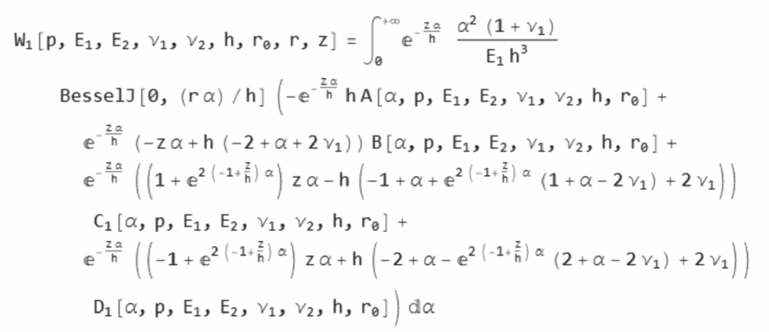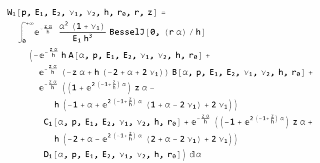 - упругий прогиб конструкции Sупр = W[r, z], мм, в расчетной точке (r = 0, z = 0);