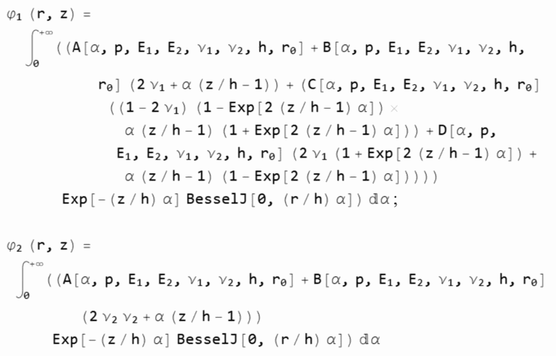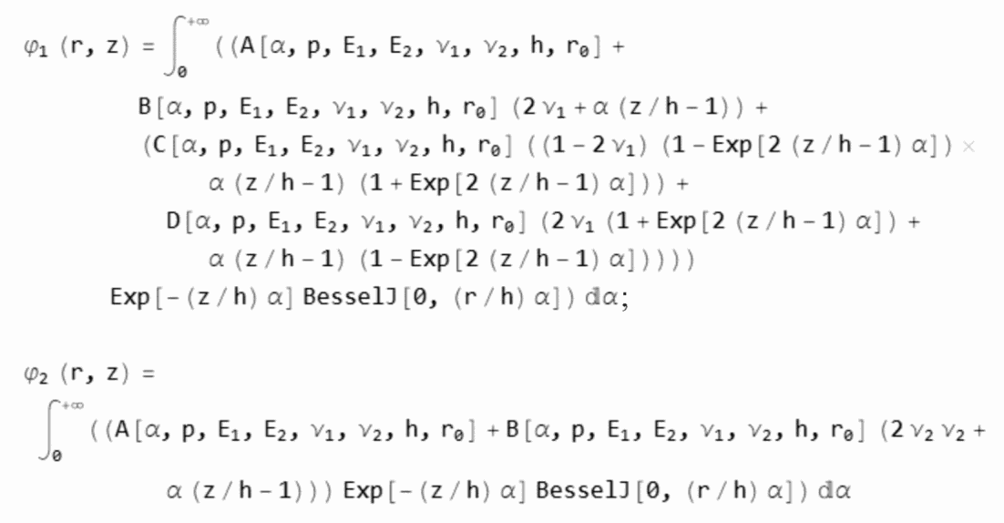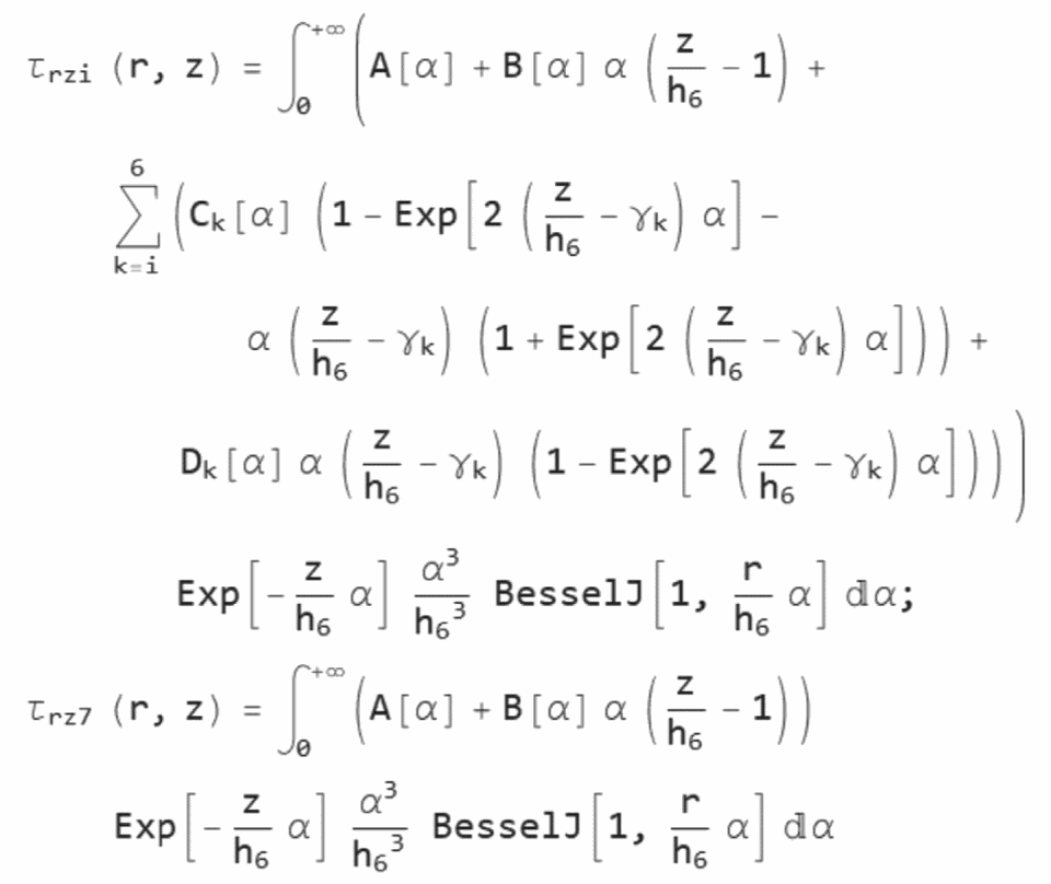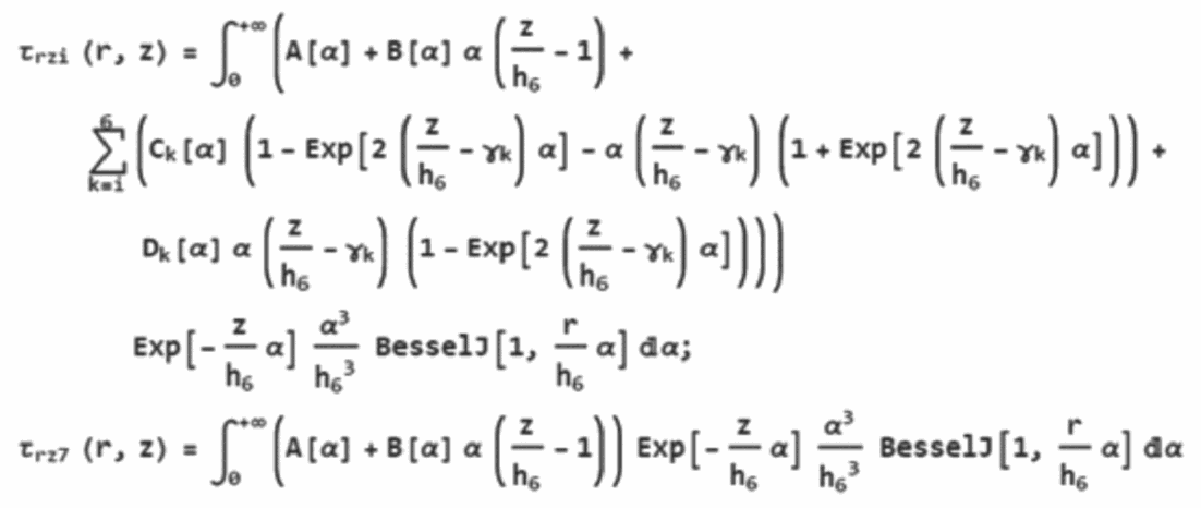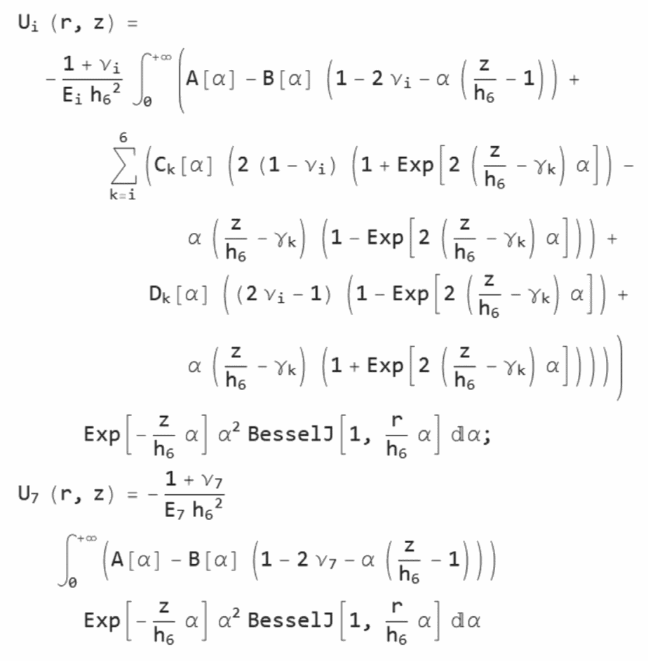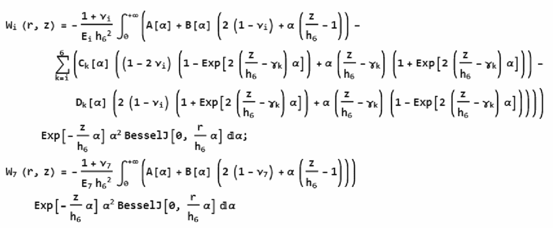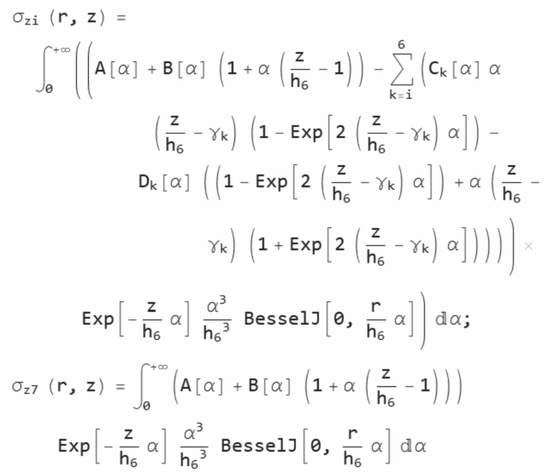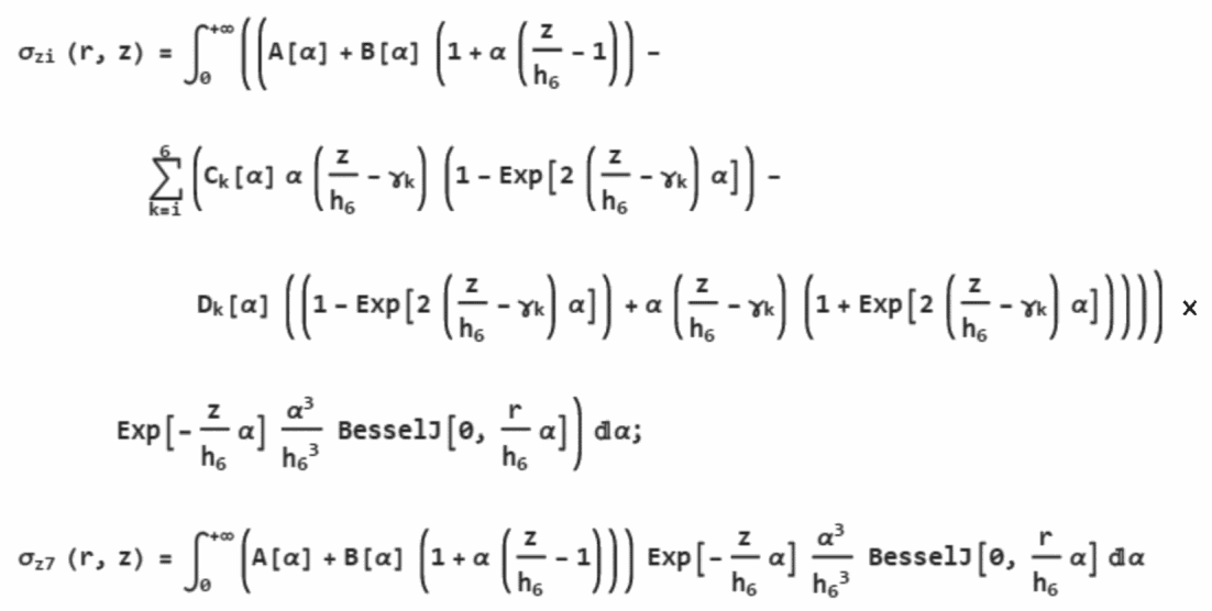 Алгоритмы расчета параметров НДС конструкции нежесткой дорожной одежды разработаны на основе решения осесимметричной задачи теории упругости для многослойной среды (до семи слоев), включая слой подстилающего упругого полупространства, нагруженный осесимметричной нагрузкой в виде кругового штампа произвольного диаметра.