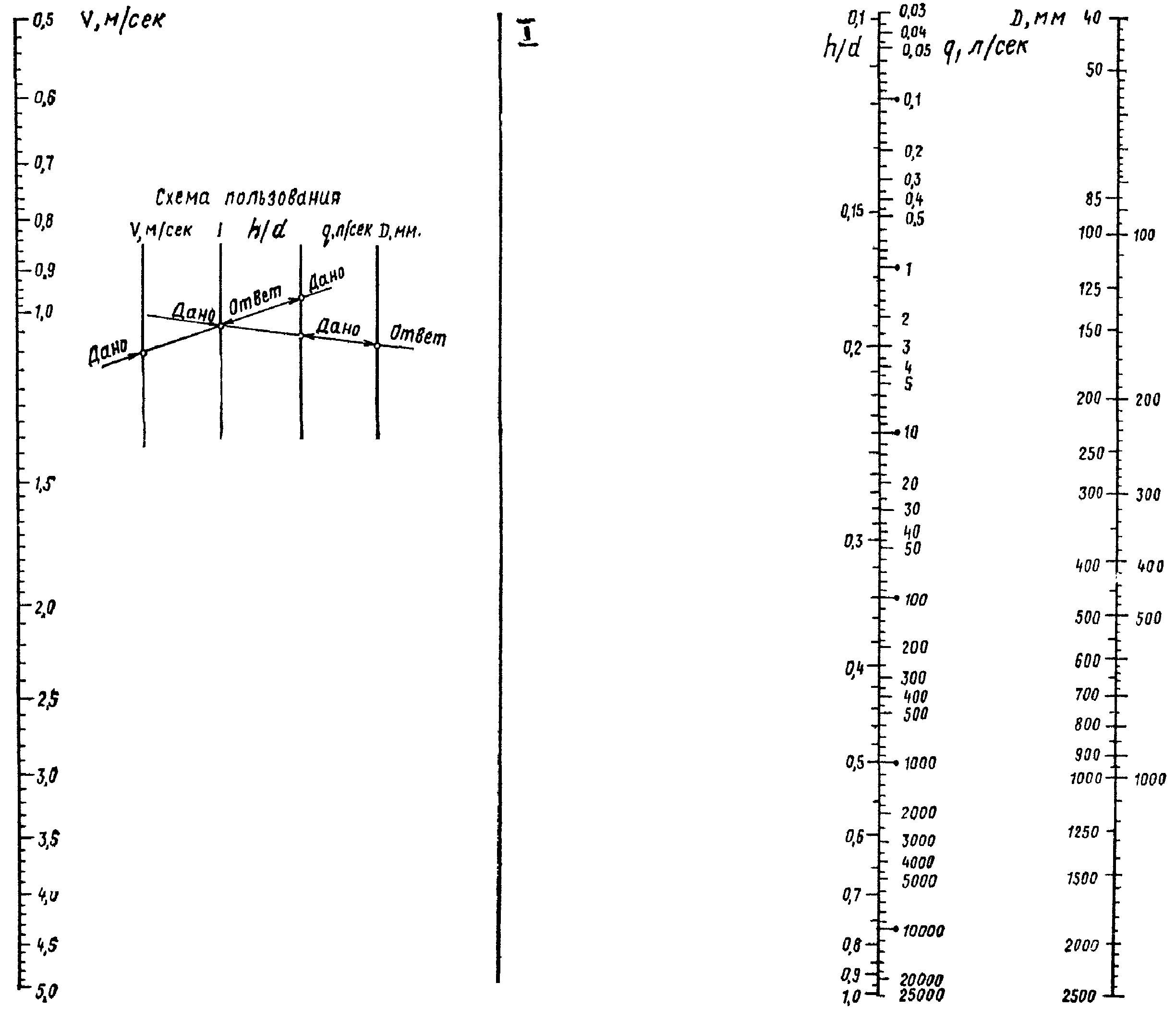 Рис. 1. Номограмма для определения гидравлического уклона