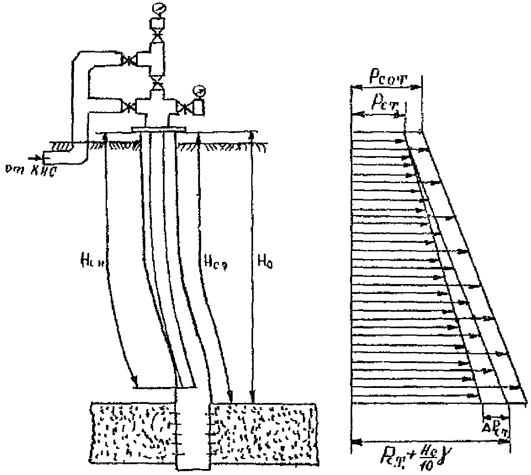 2.4. При закачке воды только в затрубное пространство гидравлические потери в нем равны (в качестве пьезометра используются НКТ):